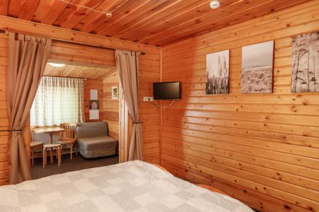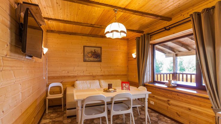 База отдыха предлагает комфортабельные номера для 2 гостей и уютные коттеджи для 4 и 6 человек. Каждый объект размещения оснащен всем необходимым для приятного проживания. На кухнях есть вся необходимая техника и посуда для приготовления пищи и сервировки стола. Гостям предоставляются средства для мытья посуды, тряпки, губки, бумажные салфетки и полотенца, а также мусорные пакеты. Для большой компании предусмотрена 12-местная вилла с камином, сауной и кухней.